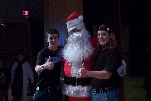 This is after that dance group we did saturday. They paid me twice as much as Murfy,who did twice as much work. We managed to insinuate ourselves into the line of small children hoping to have their picture taken with Santa. He totally gave us candy canes. |